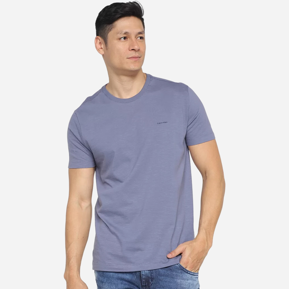 Em tecido 100% algodão, a camiseta masculina slim minimalista flamê Calvin Klein tem manga curta, detalhe em flamê, gola careca e estampa frontal no lado direito com logo aplicado em silk de cor preta.